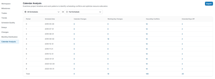 The Calendar Analysis in SmartPM tracks changes to your project's calendars, providing transparency and aiding in schedule analysis.