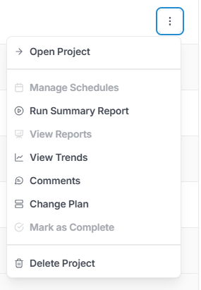 Quickly mark a project as complete which will remove the project from the metrics in the executive dashboard but the project will remain functional in the slot type its assigned to, change it back to active if you want the metrics to be included again |