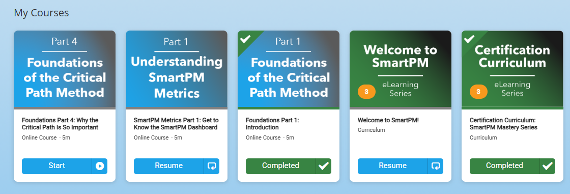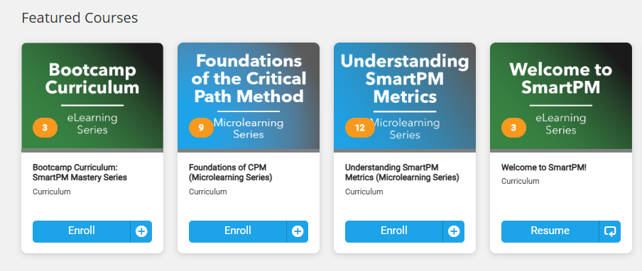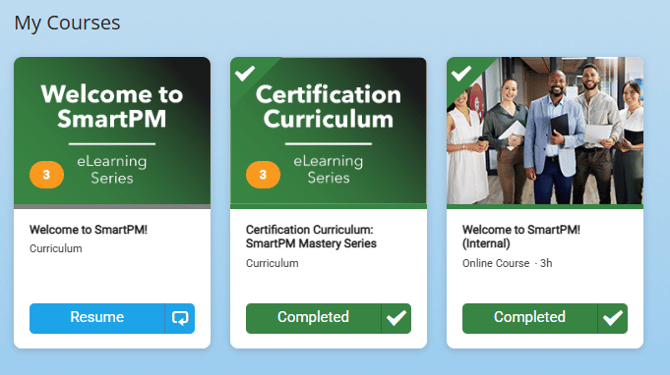 - Catalog: The full library of available SmartPM Academy content